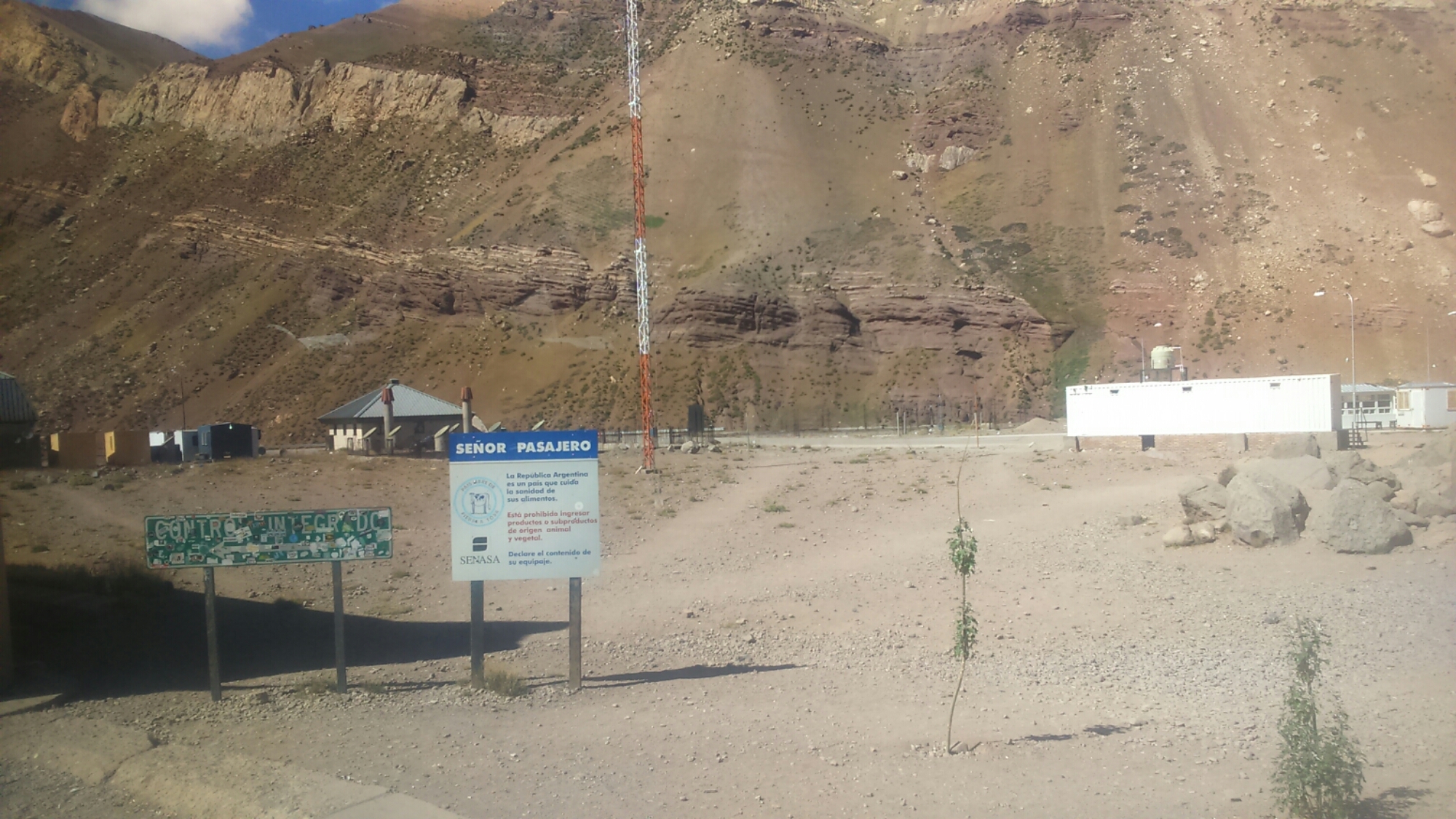 Nie tylko widoki okazały się być jednak nie lada atrakcją. Na samej granicy spędziliśmy dobrą godzinę, w przerażeniu w ostatniej chwili wyrzucając chilijski jogurt i dwie bułki. Niby nie można przewozić artykułów spożywczych, ale pewna Niemka chwaliła się po niemałym stresie, że udało jej się przewieźć musli 🙂 My woleliśmy nie ryzkować, tym bardziej, że kontrola była bardzo szczegółowa. No i w wypadku, gdybyśmy musieli się z czegoś tłumaczyć, mielibyśmy pod górkę, bo tak jak my znamy po hiszpańsku trzy słowa na krzyż, tak panowie celnicy nie znają ani słowa po angielsku 😉