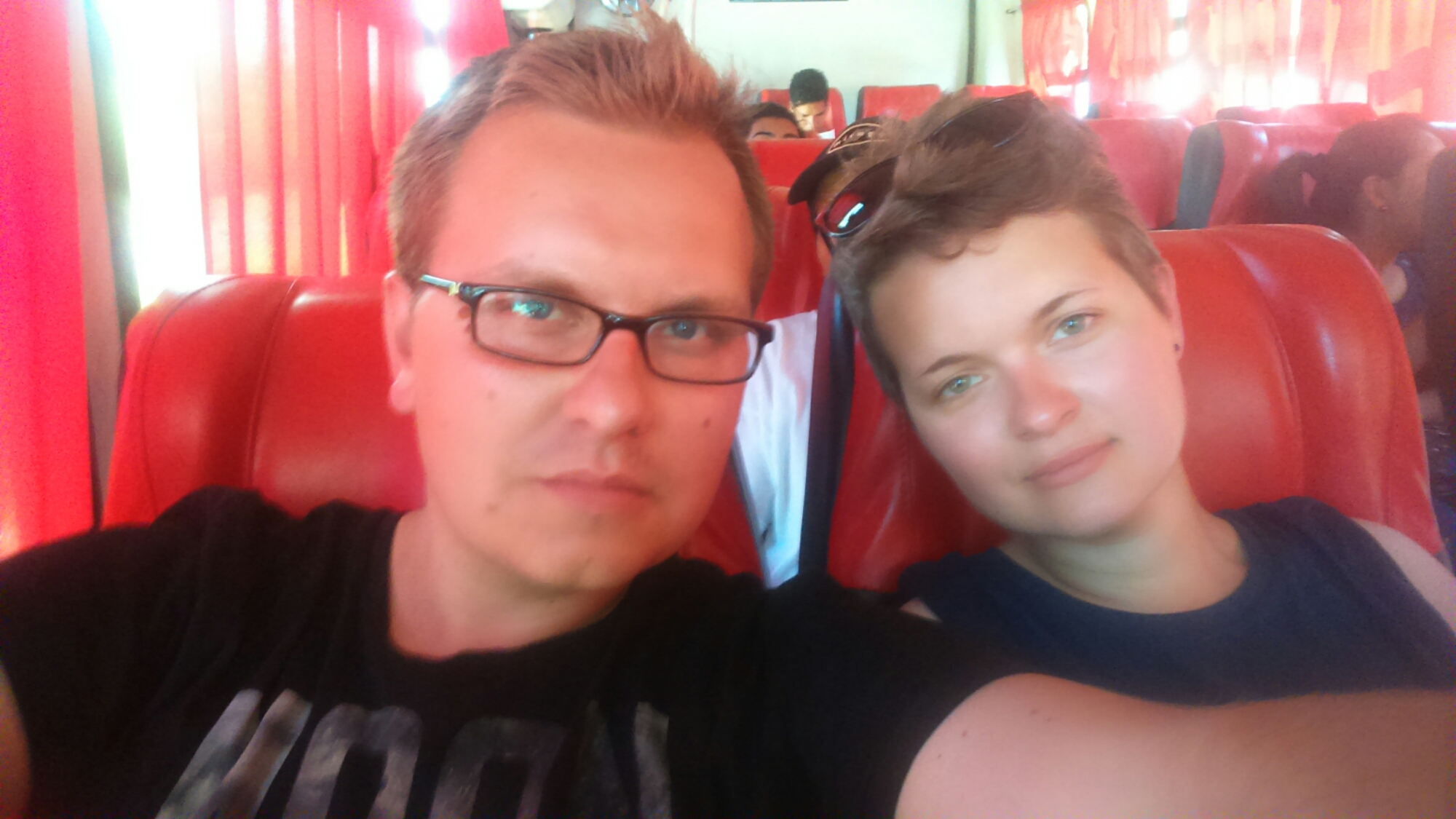 P.S. Dotarliśmy na miejsce, choć oczywiście nie obyło się bez przeszkód. Musieliśmy odstać swoje w 36-stopniowym upale na granicy brazylijskiej, na której jeden busiarz nas wyrzucił, a dopiero po ok. godzinie kolejny zgarnął. Po łącznie 27 godzinach w podróży wyglądaliśmy tak: