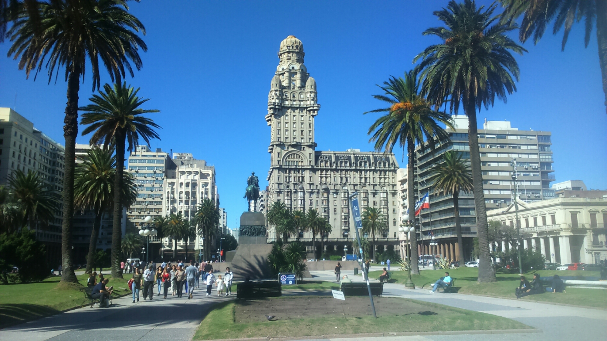 Może wystarczy już o naszych niesamowitych hostach i równie świetnym jedzeniu, czas na parę słów o mieście. Montevideo spodobało nam się od pierwszego wejrzenia. W porównaniu z Buenos wydaje nam się bardziej spokojne i kameralne, choć mieszka tu połowa liczącego 3 mln mieszkańców kraju. Nowoczesne budynki nie rzucają się bardzo w oczy, przeważa zabudowa z końca XIX i początku XX wieku. Z racji napływu imigrantów głównie z Hiszpanii i Włoch, podobnie jak miało to miejsce w Buenos, architekura podobną jest do tej widzianej w stolicy Argentyny. Co charakterystyczne, ścisłe centrum nie jest zdominowane przez biznes, wciąż mieszkają tu „normalni” ludzie. Miasto zobaczyliśmy również z rowerowej perspektywy oraz z 26. piętra najwyższego budynku w mieście.