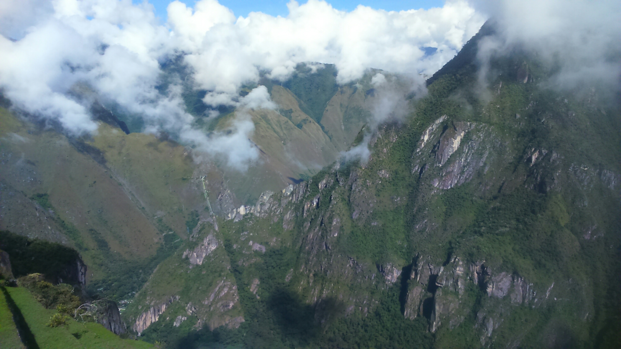 Czas na gwóźdź programu! Coś, na co czekaliśmy od 1988 roku! Coś, bez czego nasza podróż nie miałaby sensu! Wyprawa na Machu Picchu stała się faktem i jak się później okazało była fizycznie wyczerpująca. Wszystko zaczęło się we wtorek o 7.30 rano, kiedy to wsiedliśmy do busa, który po 8 godzinach wysadził nas pośrodku niczego, ale jakże pięknego niczego 😉 Sama podróż była niesamowitą przygodą, ponieważ mniej-więcej od połowy, przebiegała po stromych, górskich zboczach z widokami zapierającymi dech w piersiach. Poźnym popołudniem, po 12 km spaceru wzdłuż torów (więcej szczegółów na końcu wpisu), zameldowaliśmy się w malowniczo położonym miasteczku Aguas Calientes. Szybkie poszukiwanie noclegu, obiadokolacja i karton wina przed snem, żeby o 22 przyłożyć się do poduszki, bo następnego dnia pobudka już o 4 w nocy. Wszystko poszło zgodnie z planem i już nad ranem maszerowaliśmy wesoło z czołówkami na głowach po stromym zboczu góry. Można było wziąć busika na szczyt, ale za punkt honoru postawiliśmy sobie wejście na Machu Picchu o własnych siłach. Niespełna dwie godziny i już mogliśmy cieszyć się upragnionymi widokami! Machu Picchu to zagubione miasto Inków, prawdziwy skarb, który pewnie nie cieszył by dziś naszych oczu, gdyby w XVI w. o jego istnieniu wiedzieli Hiszpanie plądrujący Cusco. Tak się jednak nie stało i po opuszczeniu przez Inków w I. połowie XVI stulecia o istnieniu osady wiedzieli tylko lokalni mieszkańcy. Przez 400 lat porastała ona dżunglą, aż w 1911 roku odkrył ją na nowo dla świata badacz z Harwardu. Cała historia tego miejsca potęgowała nasze podniecenie, a niemały wysiłek włożony w jego zdobycie jasno dawał do zrozumienia, że mamy do czynienia z czymś wyjątkowym. Nie dziwimy się też temu, że miasto było zagubione, bo nie istnieje żadna droga, z której można je zobaczyć. Ponadto z każdej strony otoczone jest górskimi szczytami, co potęguje jego niedostępność. Prezentuje się cudnie, na szczycie co rano odbywa się prawdziwy spektakl z udziałem chmur, które pojawiają się i znikają co kilka minut. Uwierzcie nam – można siedzieć i godzinami hipnotycznie patrzyć się w te ruiny, zakochując się w nich. My tej przyjemności oddawaliśmy się 3 godziny, a moglibyśmy i dłużej, gdyby nie gonił nas czas. Po powrocie wieczorem do Cusco byliśmy niewiarygodnie zmęczeni, ale i niewiarygodnie szczęśliwi!