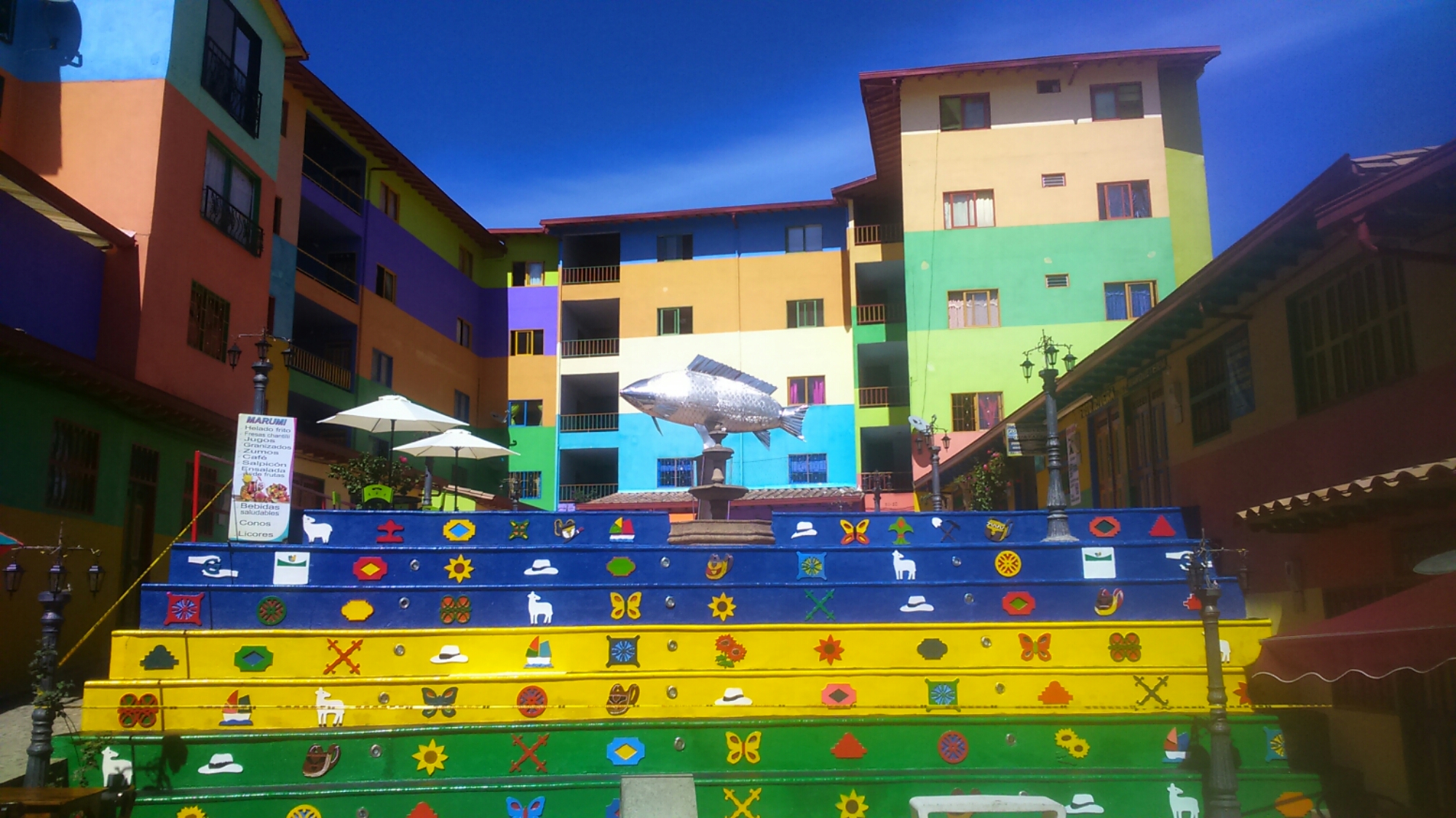 Po niespełna czterech dniach spędzonych w Medellin, przejściu niezliczonych parków, kościołów, skwerów, a nawet muzeum, chcieliśmy uciec nad plażing do Cartageny. Ceny biletów wprawiły nas jednak w osłupienie. Kolumbia to tani kraj, więc zdaliśmy sobie sprawę, że akurat to połączenie zostało stworzone tylko dla turystów. Po namyśle zdecydowaliśmy, że uciekniemy do miejsca, które jest piękne i jest blisko. Wybór padł na Guatape – senne miasteczko, otoczone wieloma jeziorami i górami, z których najbardziej znaną jest Penon de Guatape, wyglądem przypominająca Głowę Cukru w Rio de Janeiro. Sama wioska jest naprawdę mała, można ją obejść w pół godziny. Spacer jest jednak niezwykle urokliwy, zewsząd rozpościera się piękny widok, a wzdłuż wąskich, brukowanych uliczek stoją kolorowe domy z przeróżnymi motywami na fundamentach. W porówananiu z Medellin to totalnie inny świat! Cisza, spokój, w powietrzu nie unoszą się spaliny. Naprawdę leniuchowaliśmy przez te kilka dnia w Guatape, choć było to dość produktywne lenistwo 😉 Przysiedliśmy w końcu nad planem na Kubę, a dzięki dostępowi do kuchni, której nie widzieliśmy naprawdę dawno, nieco pogotowaliśmy. W końcu bezmięsne obiady! Musicie wiedzieć, że Kolumbijczycy, jak w ogóle ta część Ameryki Południowej, jedzą głównie smażone potrawy, przede wszystkim kurczaka. Trochę już wychodziło nam to uszami, więc przez 3 dni odżywialiśmy się głównie gotowanymi ziemniakiami. Nawet nie wiecie, jak smakują po takim czasie! (ostatni taki napad mieliśmy w Buenos 😉