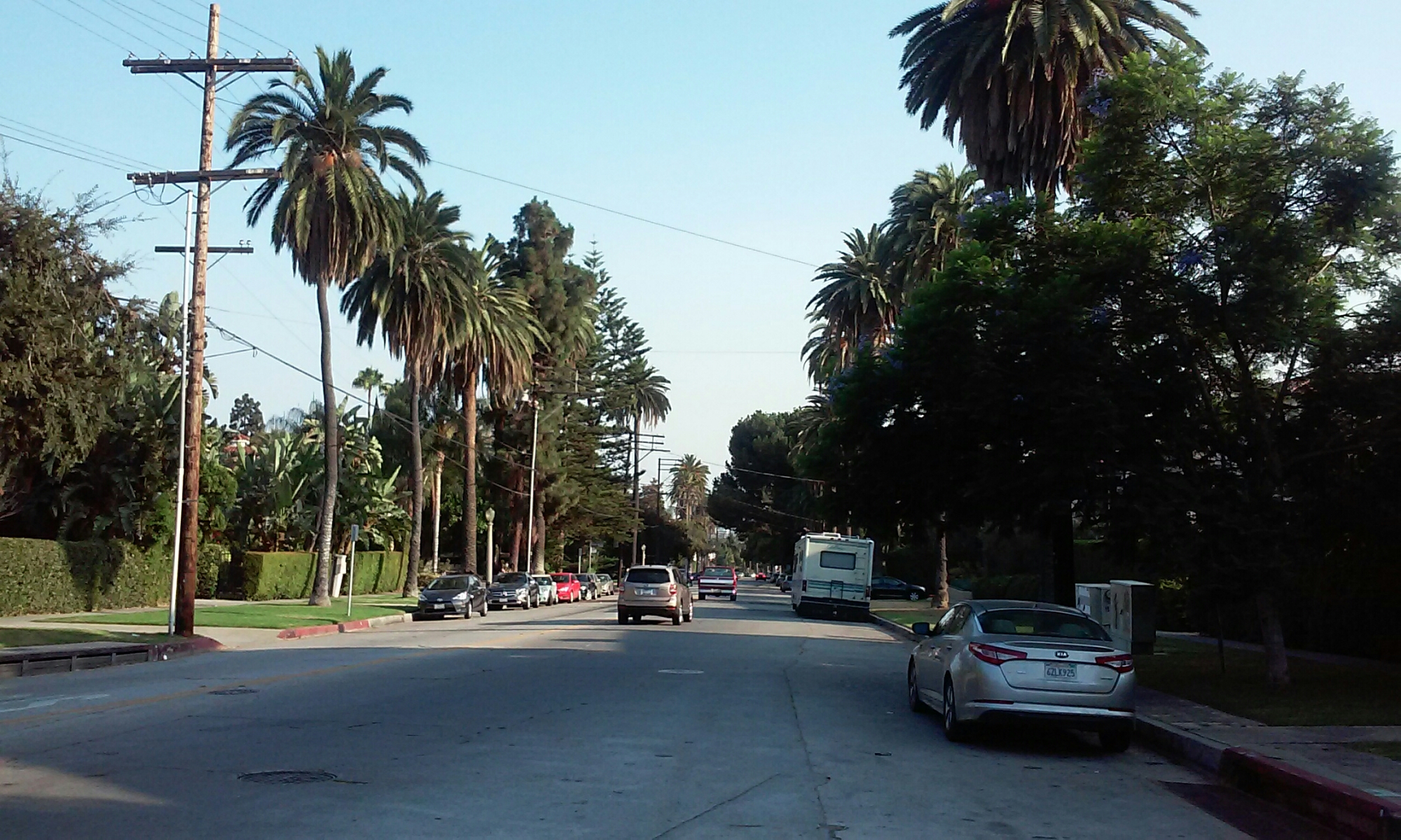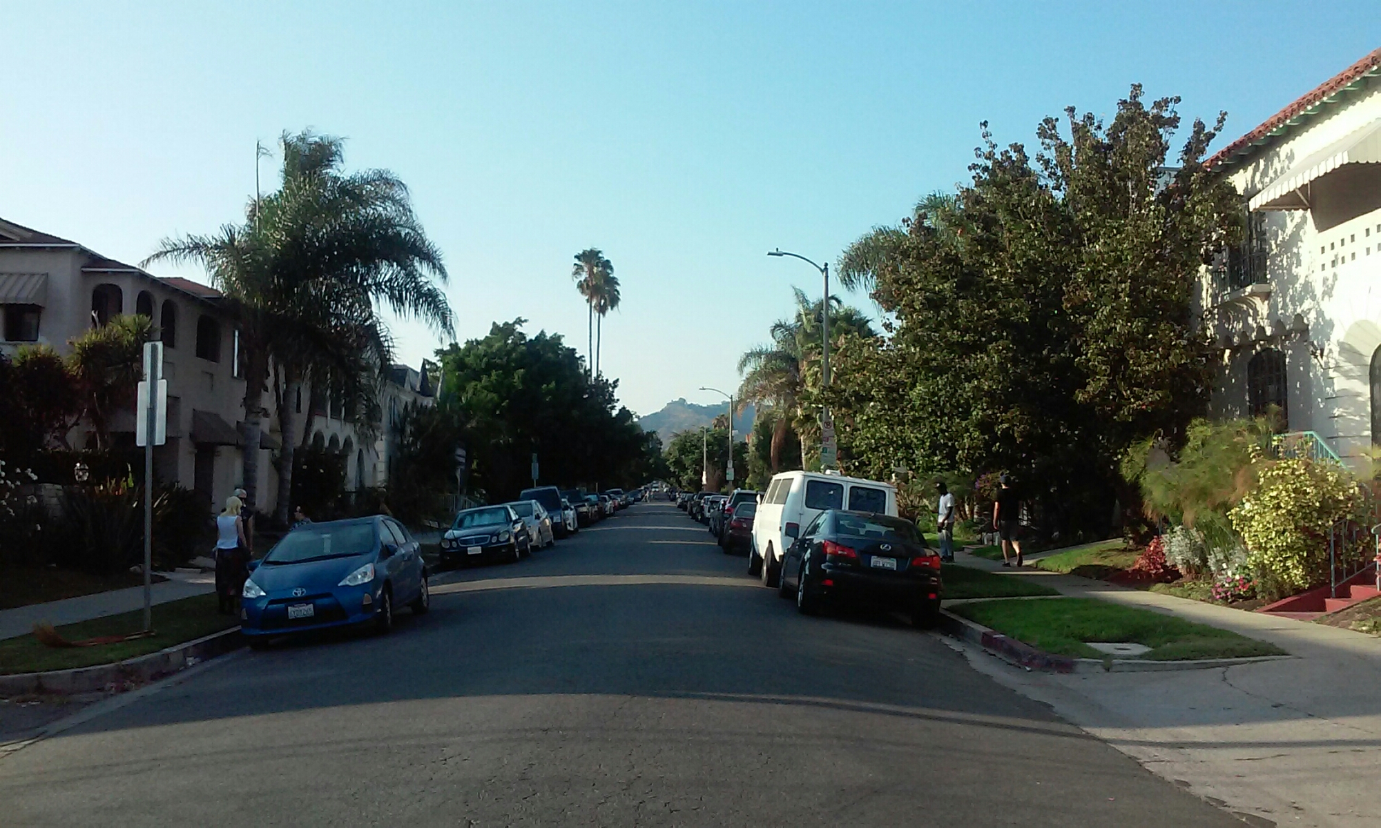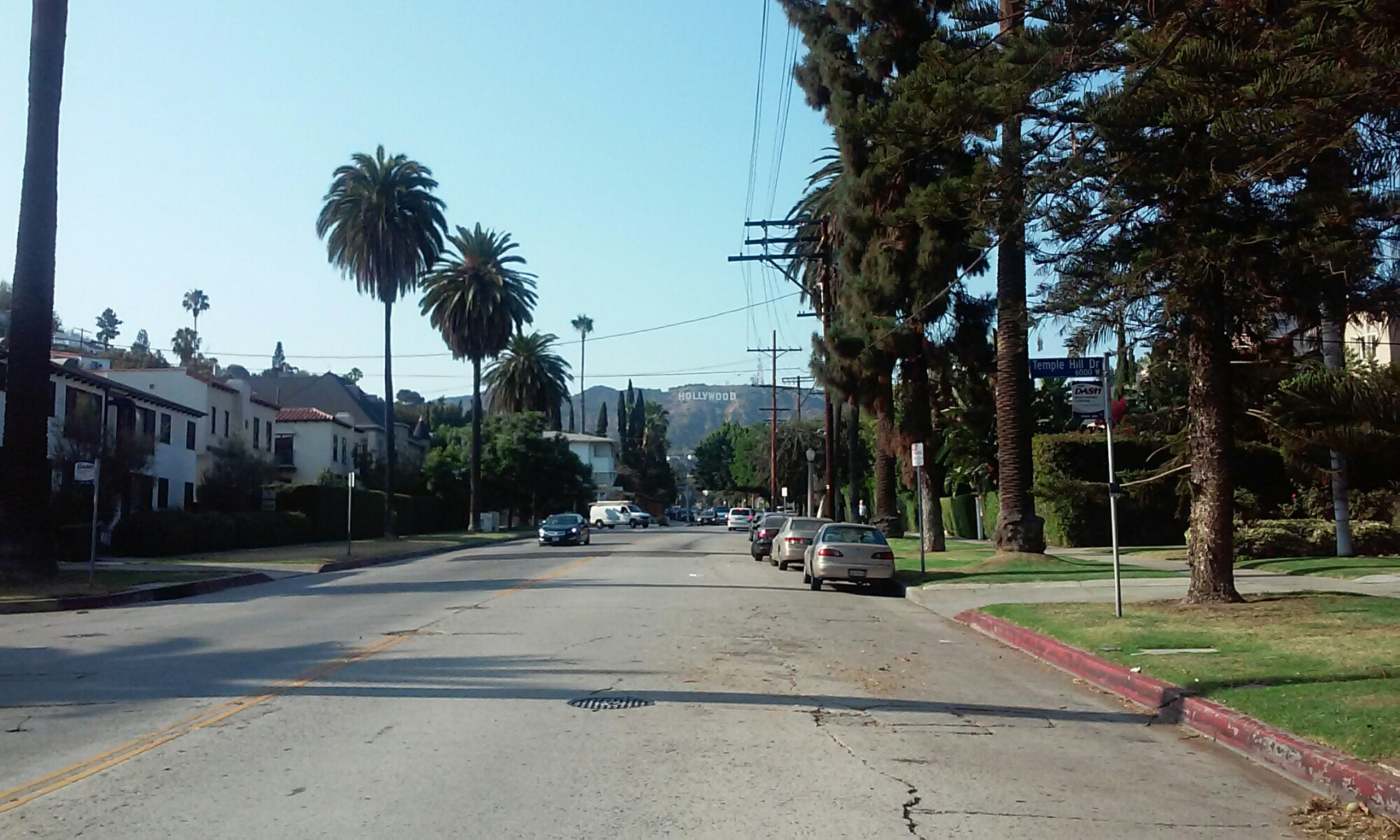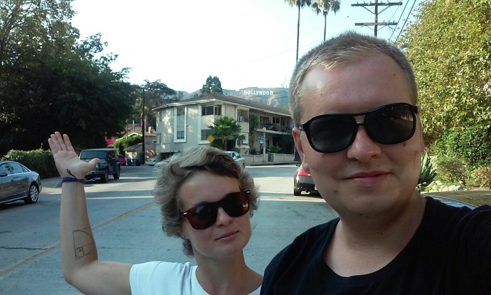Autobus okazał się być nad wyraz nocny… Dokładnie o 3:40 rano kierowca oświadczył nam, że dotarliśmy do celu. Ku naszemu zdziwieniu, nie wysadził nas na dworcu, tylko na zupełnie przeciętnej ulicy blisko centrum. Rzecz jasna nie udaliśmy się czym prędzej do naszego hosta, bo kto normalny wpada przed 5 rano 😉 Pokręciliśmy się po mieście, a gdy znaleźliśmy nasz przystanek, przysiedliśmy i zajadając fistaszki obserwowaliśmy budzące się do życia miasto. Podskoczyliśmy z radości gdy okazało się, że nasz gospodarz mieszka w prawie stuletnim domu w Hollywood i w sąsiedztwie Beverly Hills. On sam zresztą jest lokalną gwiazdą, jeszcze kilka lat temu był członkiem komediowej trupy i prowadził swoje show. Dziś życie wiedzie spokojniejsze, co niezwykle nam pasowało. Na fali pierwszej ekscytacji, po krótkiej drzemce ruszyliśmy przed siebie. Celem – upolowanie legendarnego napisu HOLLYWOOD. Widoczny jest on z w wielu punktów, nas jednak widok z odległości nie zadowalał. Musieliśmy podejść bliżej, po drodze mijając m.in. Aleję Gwiazd. Zaczepieni zostaliśmy też przez grupę scjentologów, którzy filmem o wiecznym szczęściu chcieli nam wyprać mózgi, ale nie daliśmy się 🙂 Mieszkaliśmi naprawdę w tak pięknym miejscu, że sam spacer po okolicy na każdym zrobiłby wrażenie. Ta część miasta jest niezwykle klimatyczna i urokliwa. Na każdym rogu można znaleźć modne knajpki, a niska zabudowa z kolorowymi domkami podkreśla przytulny charakter dzielnicy. Nasz host niedawno w jednej z tych małych restauracyjek spotkał Charlize Theron, a na lotnisku odbierał walizkę razem z Leonardo Dicaprio! Takie historie tylko w Los Angeles! 😉