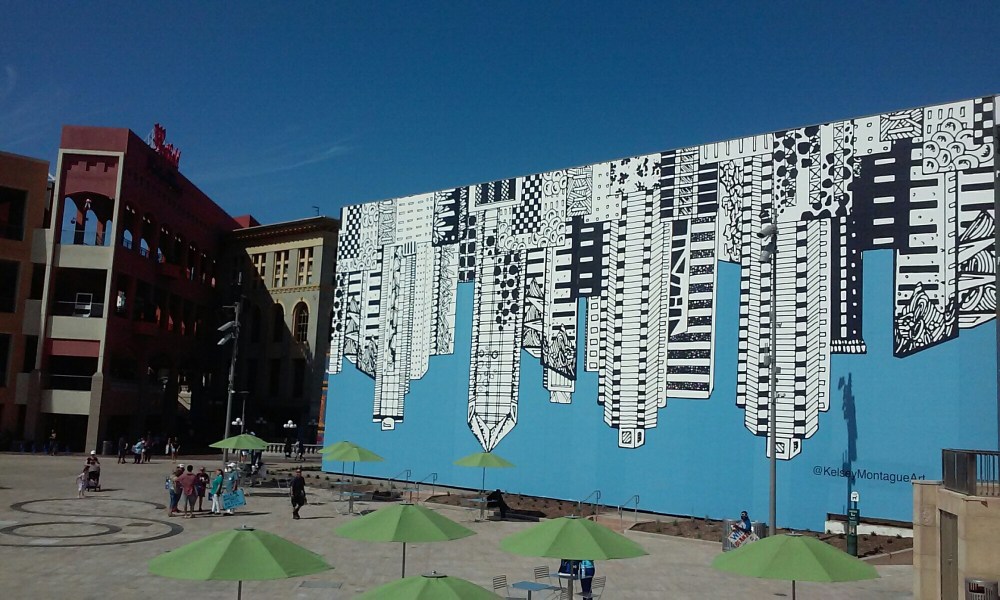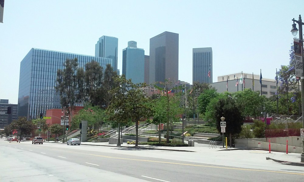 Ale że nie samym Hollywood człowiek żyje, kolejnego dnia ruszyliśmy na centrum. Po drodze zahaczyliśmy o studio filmowe Universal, acz ograniczyliśmy się tylko do kilku zdjęć i odwiedzenia sklepu Harry’ego Pottera. Przed dogłębnym zwiedzaniem powstrzymał nas nóż w plecaku, którego zapomnieliśmy wyjąć, no i zaporowa cena 400 zł od osoby… Po tej ekspresowej wizycie w końcu dotarliśmy do centrum. Niestety w porównaniu do miejsca, w którym się zatrzymaliśmy, miało niewiele do zaoferowania. Kilka reprezentacyjnych budynków, głównie jednak szklane wieżowce, czasem jakieś parki czy skwery z zielenią. Uciekliśmy zatem dosyć szybko na nasze przedmieście, by wieczorową porą pokręcić się po okolicy, wśród jedzących organiczne tofu hipsterów 😉