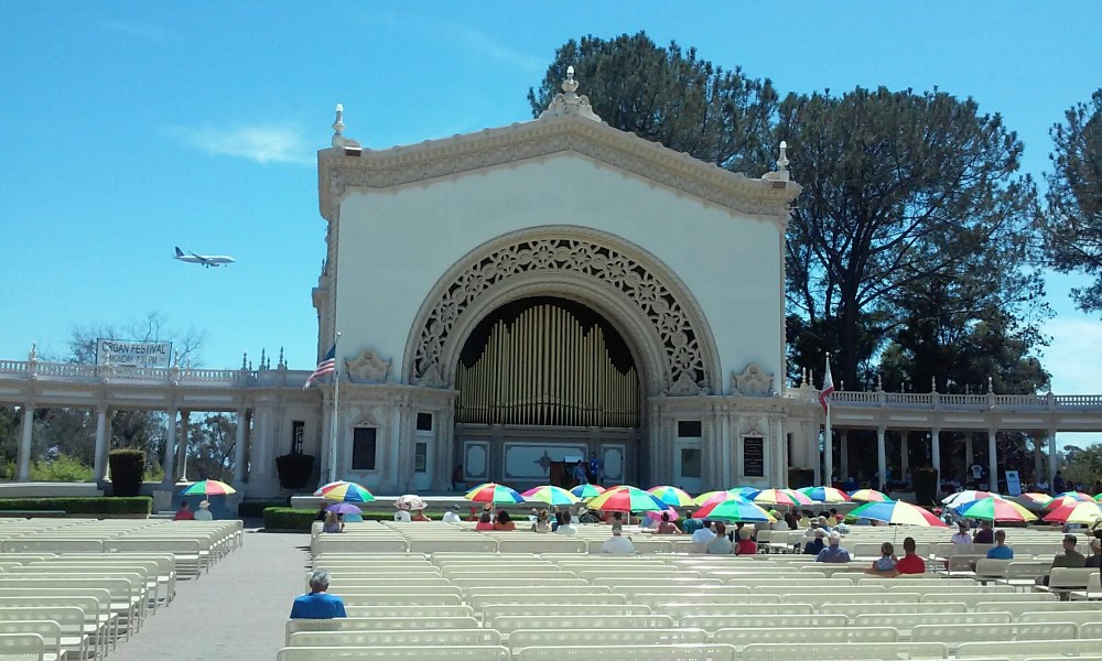 Kolejnego dnia ruszyliśmy rzecz jasna do centrum. Spotkaliśmy sporo pozytywnie zakręconych ludzi, jako że akurat odbywał się konwent fanów seriali i gier – Comic Con. W sumie dobrze dla nas – ludzie skupieni byli głównie wokół tego wydarzenia i w „turystycznych” częściach miasta nie było zbyt tłoczno 😉 San Diego nie jest może miastem przesadnie atrakcyjnym dla odwiedzających, ale jest kilka miejsc, którymi może się szczycić. Poza pięknymi plażami zaliczyć można do nich Balboa Park, usytuowany w centrum miasta wielki zielony teren, pełen muzeów i atrakcji pod chmurką. Naszą uwagę przyciągnęły szczególnie największe na świecie organy pod gołym niebem. Na nasze szczęście odbywał się właśnie festiwal organowy i niczym młodzi, kulturalni ludprzez dobre pół godziny raczyliśmy się barokowymi dźwiękami. Resztę dnia, jak to mamy w zwyczaju, szwędaliśmy się po mieście bez celu. Takie wypady lubimy najbardziej, wtedy mamy możliwość wtopienia się w tłum, by podejrzeć z bliska zachownie mieszkańców danego miejsca.