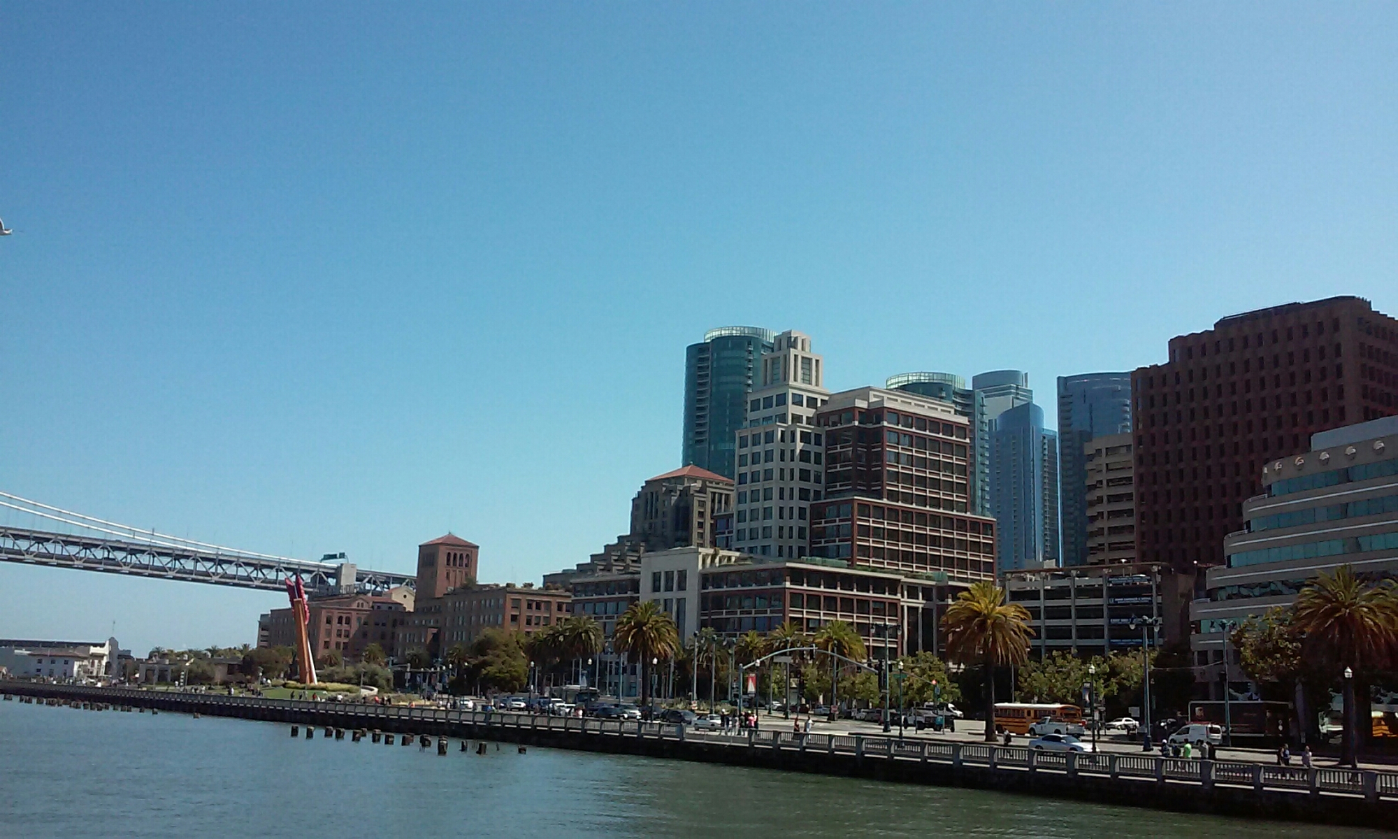Ani się obejrzeliśmy, a przywitało nas San Francisco. Ku naszej wielkiej radości temperatura spadła do normalnego poziomu i pierwszy raz od niepamiętnych czasów założyliśmy długie rękawy! Kolejne pozytywne zaskoczenie to miejsce, w którym będziemy spać przez najbliższe dwie noce. Okazało się, że zamieszkamy w ścisłym centrum, otoczeni szklanymi korporacjami. Nasz wieżowiec miał 23 piętra i piękny widok z dachu na miasto, most i zatokę 😉 Ninad, nasz gospodarz to Hindus, który przyjechał do Ameryki prawie 10 lat temu i jest typowym, młodym karierowiczem. Jak większość tu, pracuje od świtu do wieczora, noc spędzając na pracy z domu. Taki rodzaj życia, w ciągłej pogoni za pieniędzmi, których nawet nie ma kiedy wydać, nie jest dla nas, ale nie czas i miejsce na głębokie filozoficzne rozkminy. Wdzięczni jesteśmy, że Ninad nas przyjął, bo w tak dobrej lokalizacji nie mieszkaliśmy dawno.