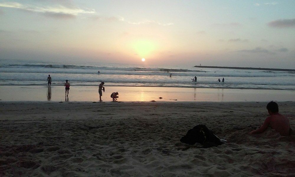 Kiedy mówimy ludziom, że odwiedziliśmy San Diego, nieco się dziwią, acz wszystko staje się jasne, gdy wspominamy o tym, że pieszo przekroczyliśmy meksykańsko-amerykańską granicę w Tijuanie. Zjadło nam to trochę czasu, byliśmy też w sumie jedynymi turystami z wielkimi plecakami, którzy zrobili to na własną rękę. Po trzech godzinach szczęśliwie postawiliśmy stopy na amerykańskiej ziemi, a po kolejnych 3 kwadransach w tramwaju wylądowaliśmy w centrum San Diego. Po drodze cieszyliśmy się widokami zadbanego, nowoczesnego miasta, których (nie ukrywamy) ostatnimi czasy nie było wiele 😉 Jeszcze jeden autobus i już staliśmy u drzwi naszego gospodarza, Antonio. Z radością odnotowaliśmy, że jego dom znajduje się 5 minut spacerem od ukochanej przez surferów plaży. Bez zbędnego zastanowienia rzuciliśmy plecaki i po szybkich zakupach ruszyliśmy na plażę. Woda zimna niczym w Bałtyku, co nieco zmniejszyło nasz żal związany z zakazem morskich kąpieli „bo tatuaże jeszcze świeże”. Widok z plaży i pobliskiego mola w zupełności jednak nam wystarczył, pierwszy zachód słońca po tej stronie Stanów zaliczony 😉